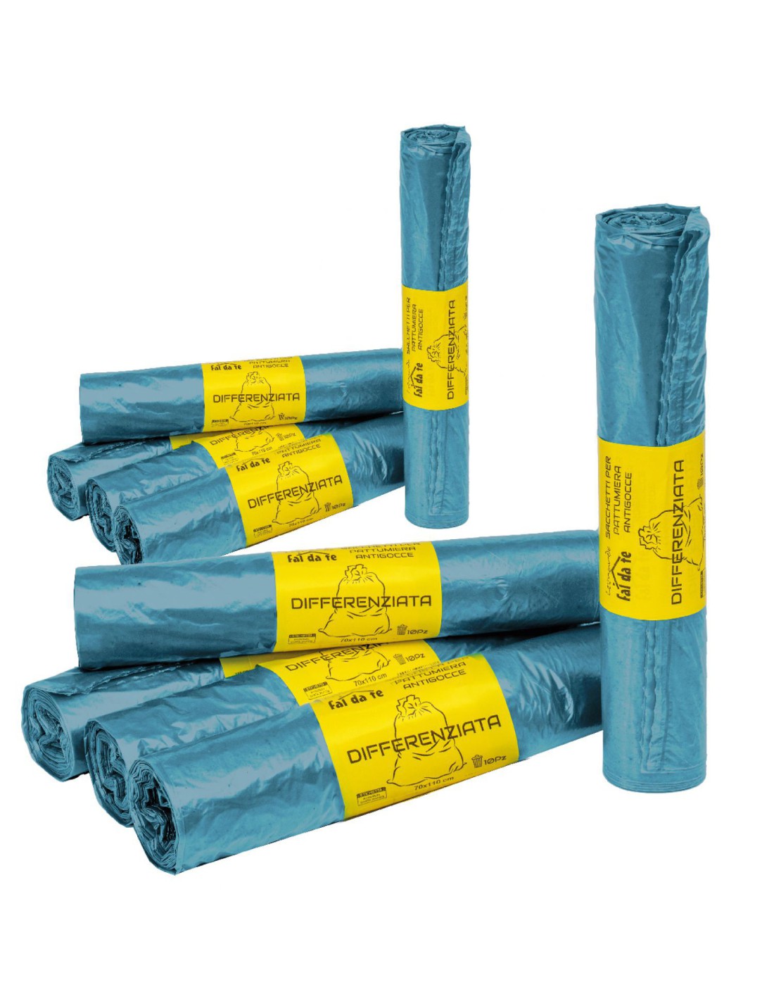 Leonardo Fai Da Te - sacchi pattumiera 70x110 50 sacchetti , sacchi CELESTE robusti - sacchi spazzatura - 100% plastica riciclabile - 100% made in italy