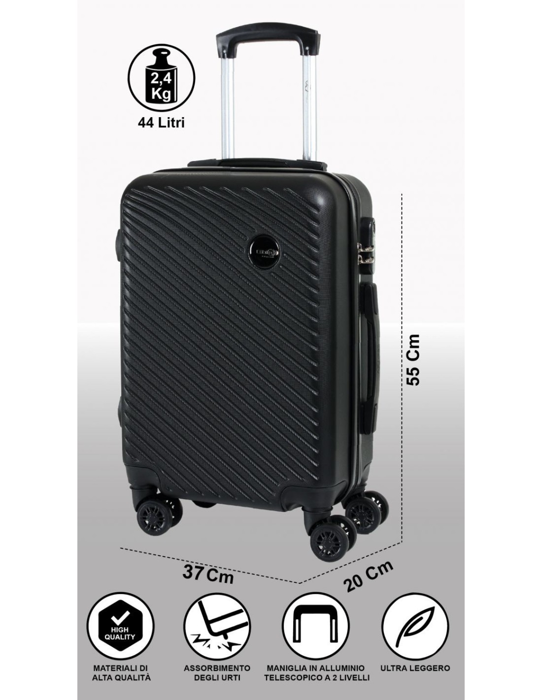 CABIN 5508 Valigia Trolley ABS, bagaglio a mano 55x37x20, Valigia rigida, guscio duro e antigraffio con 8 ruote.